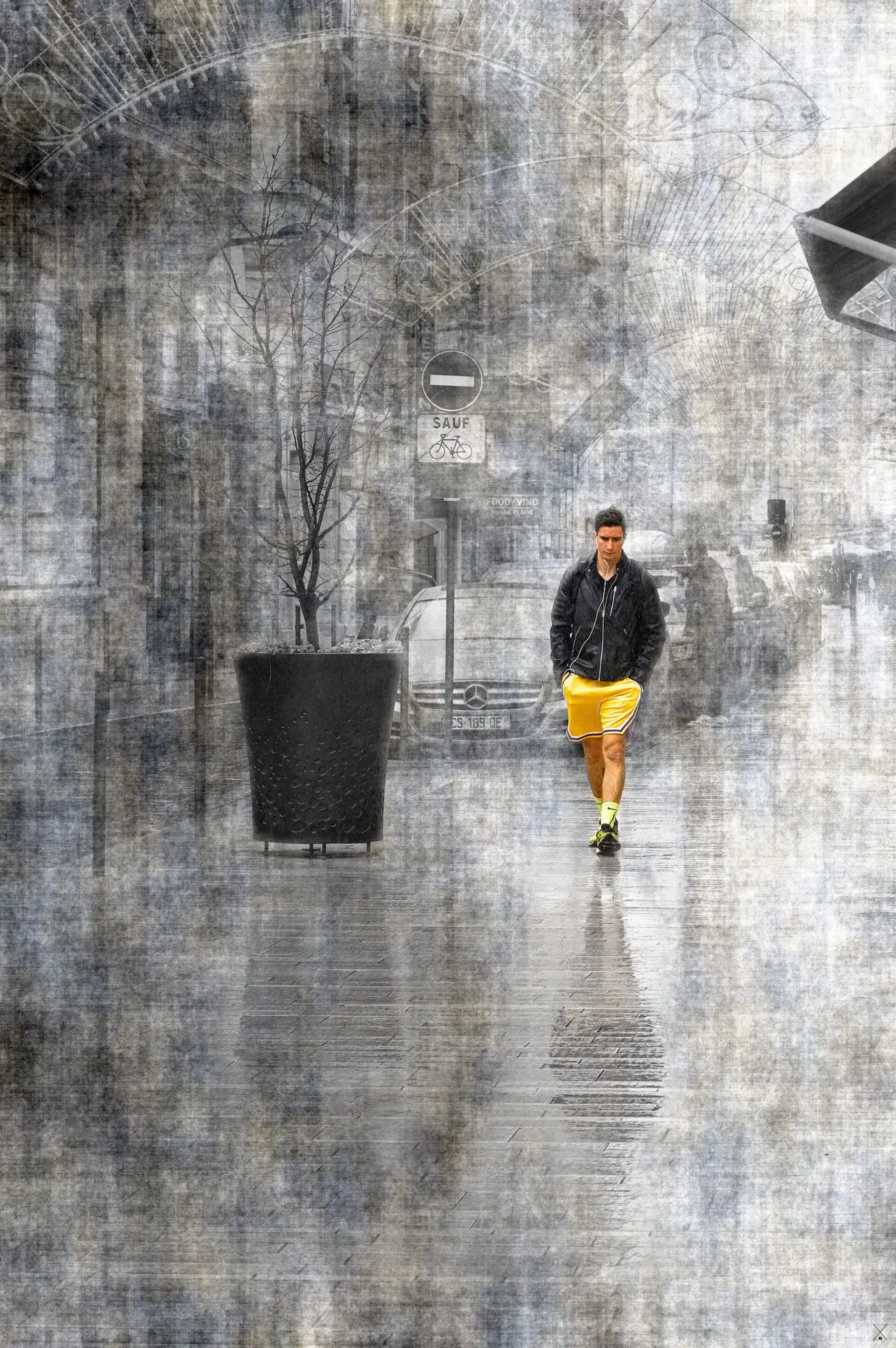 La photo de rue créative consiste à prendre une simple photo de rue et a réaliser un traitement graphique semi abstrait afin de faire ressortir le ou les personnages principaux.